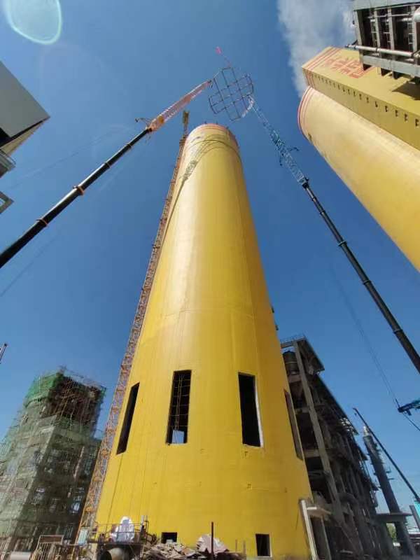 山东明水新建尿素造粒塔,为追求最好的环保治理效果,满足政策要求,采用了境业环保的造粒尾气高效净化系统3.0。业主要求整体目标为5月底具备投产条件,项目时间紧、现场场地狭小、工作面开展受限,给造粒尾气高效净化系统的施工带来挑战。
