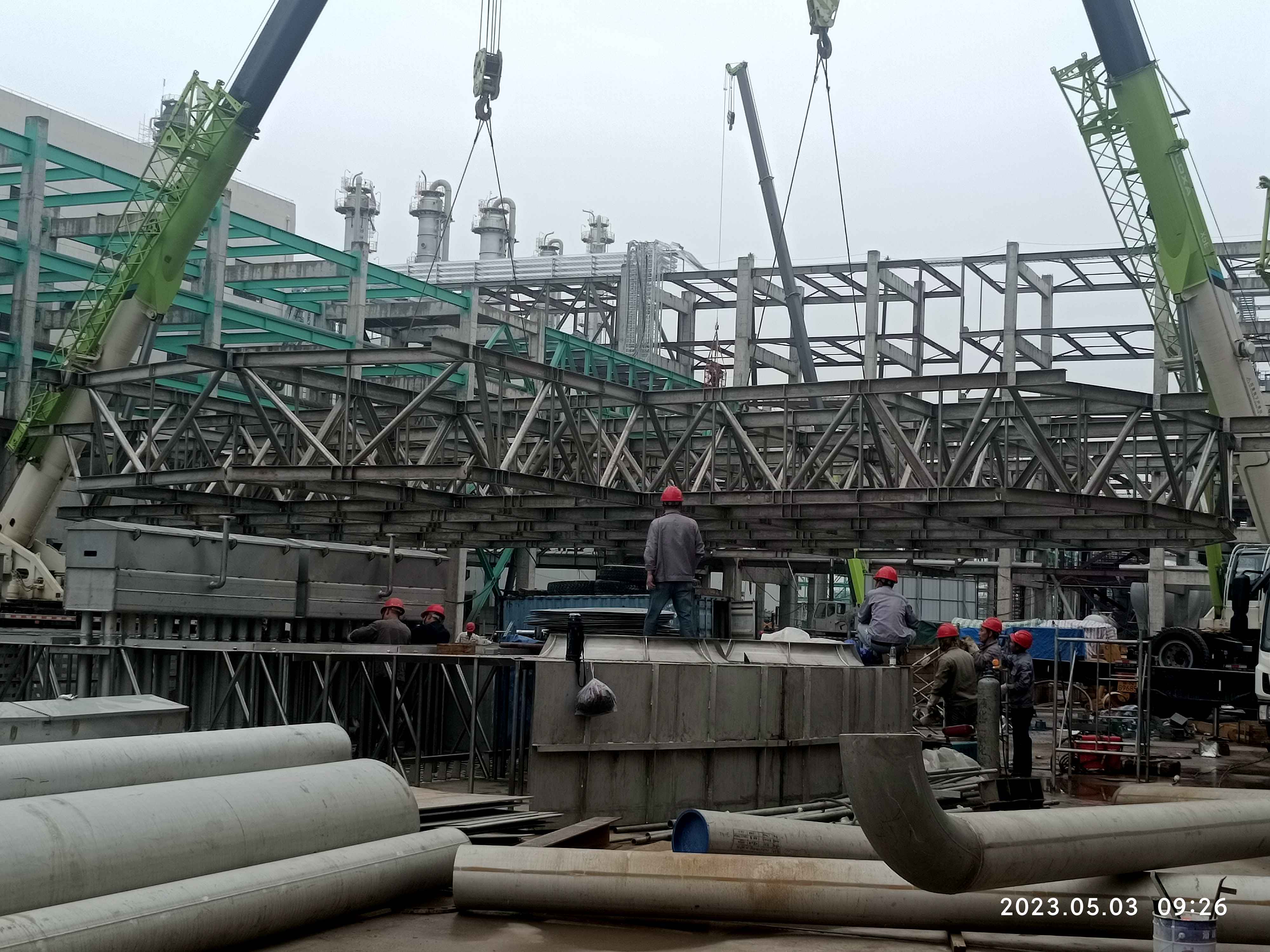 上海境业急用户所急,项目经理有效协调供应链组织生产,积极筹备现场施工组织,于4月15日开始发货,4月18日进场施工。在业主的大力支持下,现场施工严把安全和质量关,进展神速,于4月29日顺利完成系统钢结构和本体的吊装工作,创造了12天完成系统地面组装和塔顶吊装的项目里程碑!
